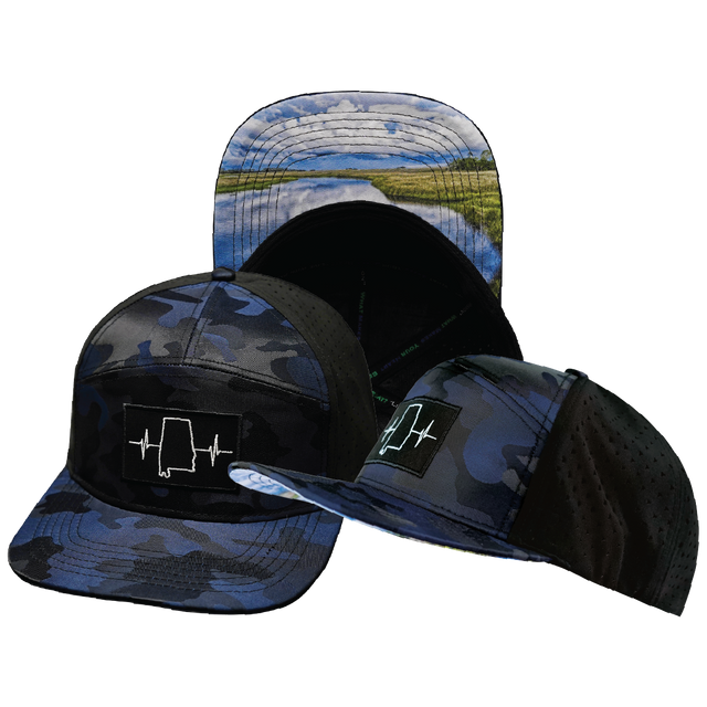 The Heartbeat Brand challenges you to "Live With Passion". You can show your love for Alabama with our stylized 7 panel hat design. Our designer collections have beautiful detail, and are some of the most unique hats around. Now ask yourself, What Makes Your Heart Beat?