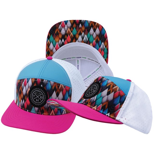 **YOUTH** THB - 7 Panel - Neon Peaks - Neon Pink / Neon Green Blue / White - Laser Mesh (Unisex)