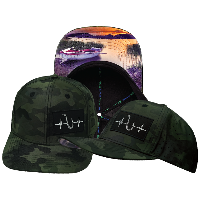 The Heartbeat Brand challenges you to "Live With Passion". You can show your love for Fishing with our stylized 6 panel hat design. Our designer collections have beautiful detail, and are some of the most unique hats around. Now ask yourself, What Makes Your Heart Beat?