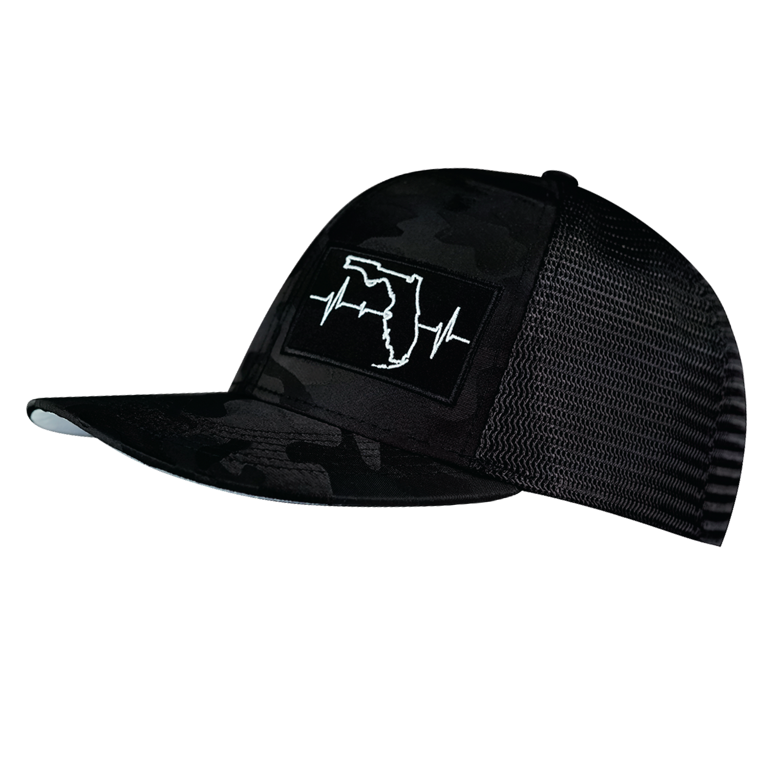 Florida - 6 Panel - Black Camo / Black - Trucker Mesh (Unisex)