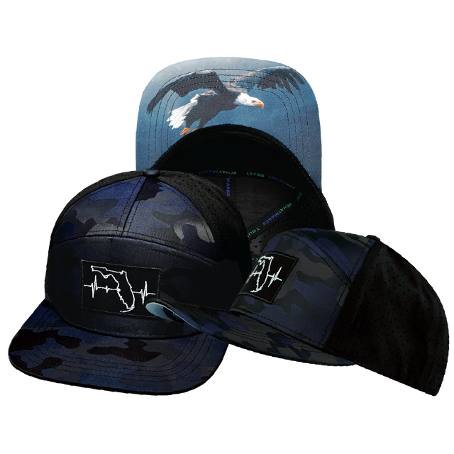 The Heartbeat Brand challenges you to "Live With Passion". You can show your love for Florida with our stylized 7 panel design. Our designer collections have beautiful detail, and are some of the most unique hats around. Now ask yourself, What Makes Your Heart Beat?