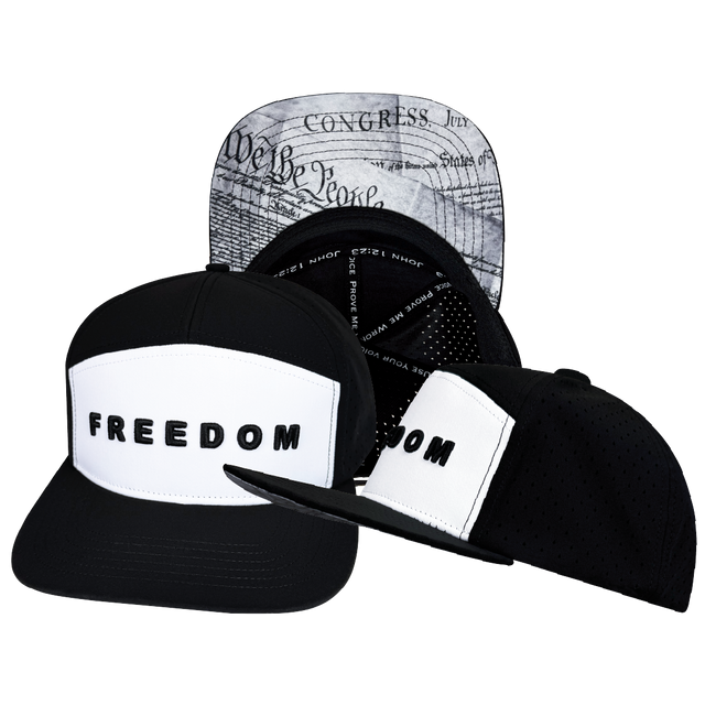 FREEDOM Hat - 7 Panel - Black / White - Laser Mesh - Proceeds go to TPUSA