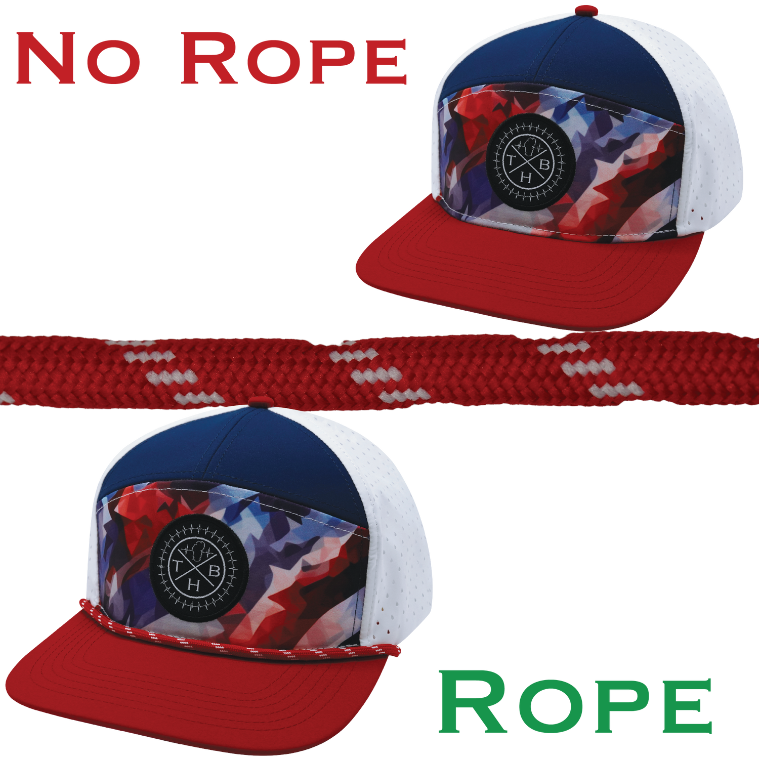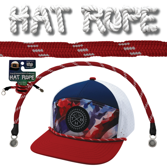 With this red and white Dash Hat Rope you can turn any hat into a rope hat in seconds with our magnetic Hat Rope. The thin magnetic ends click into place for a secure hold, so you can add, remove, or swap ropes without sewing or tools. Designed in the USA, this interchangeable hat accessory fits snapbacks, trucker hats, dad hats, five panel and six panel caps, baseball hats, flat or curved bills. Durable paracord style construction keeps its shape, the magnets stay put, and the look is instant. Customize your cap for the trail, the course, or everyday wear, then change colors to match your fit.