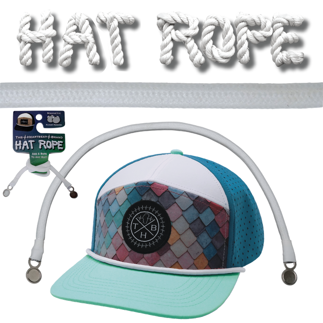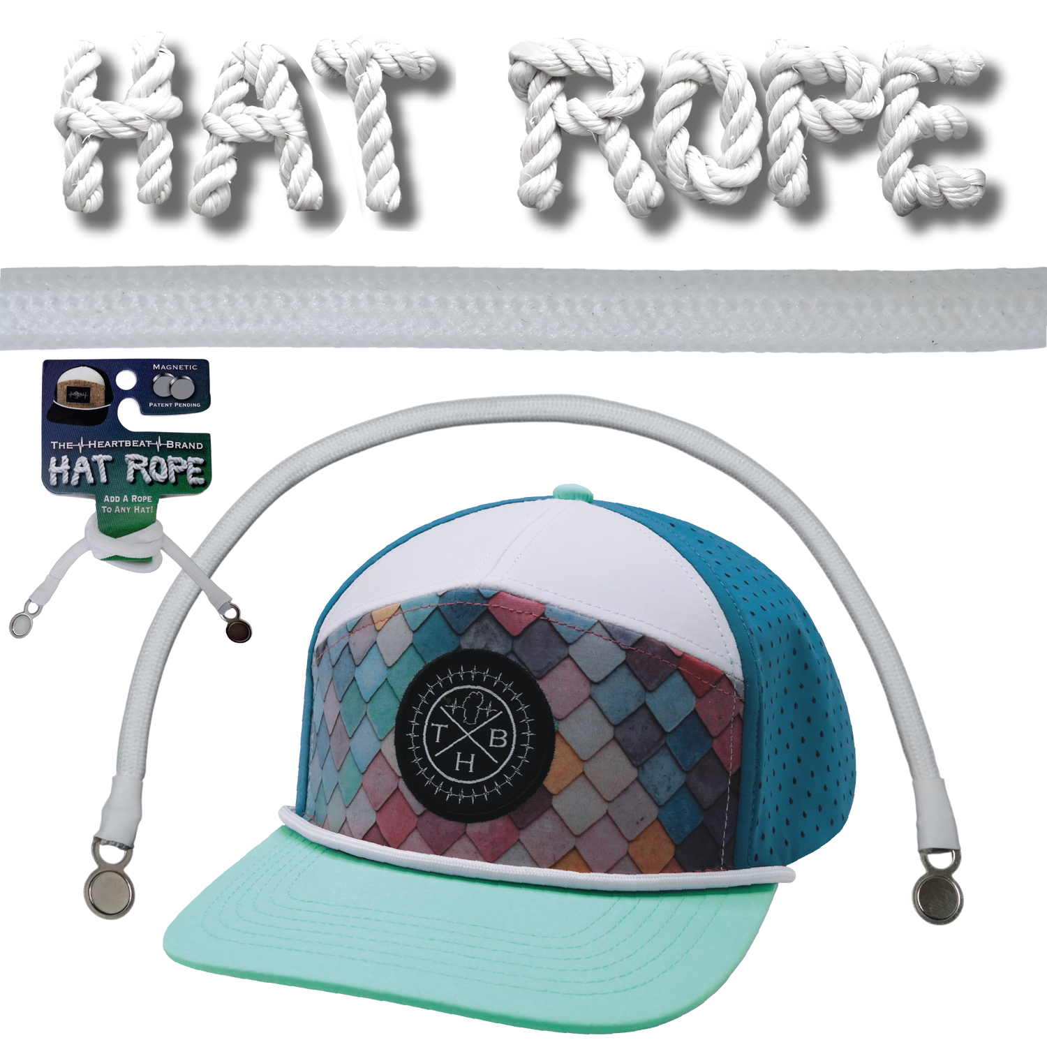 With this white Hat Rope you can turn any hat into a rope hat in seconds with our magnetic Hat Rope. The thin magnetic ends click into place for a secure hold, so you can add, remove, or swap ropes without sewing or tools. Designed in the USA, this interchangeable hat accessory fits snapbacks, trucker hats, dad hats, five panel and six panel caps, baseball hats, flat or curved bills. Durable paracord style construction keeps its shape, the magnets stay put, and the look is instant. Customize your cap for the trail, the course, or everyday wear, then change colors to match your fit.