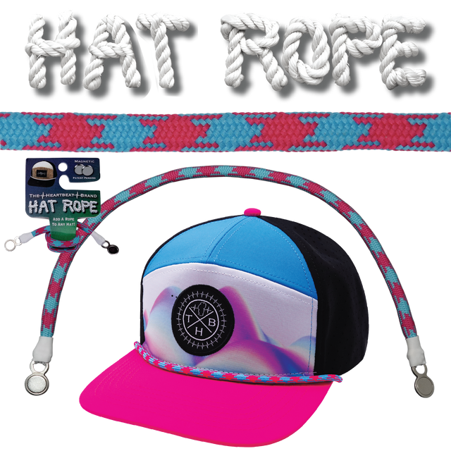 With this neon blue and neon pink Aztec Hat Rope you can turn any hat into a rope hat in seconds with our magnetic Hat Rope. The thin magnetic ends click into place for a secure hold, so you can add, remove, or swap ropes without sewing or tools. Designed in the USA, this interchangeable hat accessory fits snapbacks, trucker hats, dad hats, five panel and six panel caps, baseball hats, flat or curved bills. Durable paracord style construction keeps its shape, the magnets stay put, and the look is instant. Customize your cap for the trail, the course, or everyday wear, then change colors to match your fit.