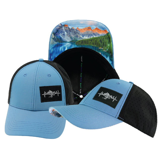 Mountains - 6 Panel - Shallow Fit - Pony Tail - Blue / Black - Laser Mesh (Unisex)