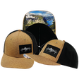 Mountains - 6 Panel - Tan Textured / Black - Laser Mesh (Unisex)