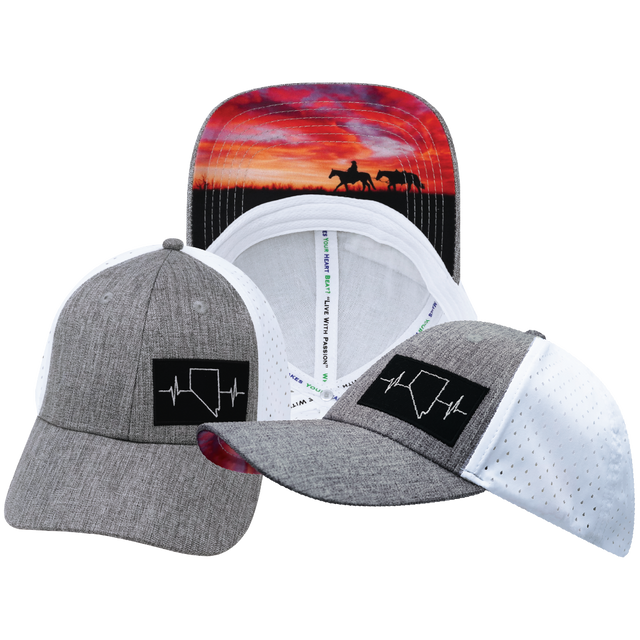 The Heartbeat Brand challenges you to "Live With Passion". You can show your love for Nevada with our stylized 6 panel, shallow fit, pony tail hat design. Our designer collections have beautiful detail, and are some of the most unique hats around. Now ask yourself, What Makes Your Heart Beat?